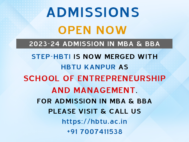 The management programme leading to an MBA degree at STEP-HBTI is being carried on since 2004. Lately, seeing a huge demand for well oriented and qualified professionals worldwide, the Institute has increased its MBA seats from 120 to 180 in the year 2020, where it offers a wide spectrum of courses which are tailor-made to meet the industry requirements. It has got all infrastructure and facilities to impart proper training in all disciplines of specialized management including information technology, which is the need of hour. A lush green campus, well stocked Library, Computer lab, Cafeteria and above all an enviroment for learning, makes the campus life more vibrant.